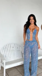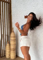 Bata Bella Náutico – Cortininha, forro no busto, com opção de amarração frontal ou atrás e ponteira madre pérola. Malha em tule na cor náutico, possui toque macio e agradável