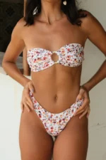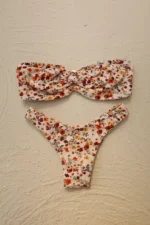 Biquíni Mel Açucena Off – Top tomara que caia, argola banhada a ouro e calcinha asa-delta com bumbum fio duplo. Malha poliamida, na estampa açucena, deixando o conjunto ainda mais lindo. A malha é super macia, forro duplo, confortável e com proteção UV FPU 50+.