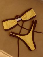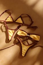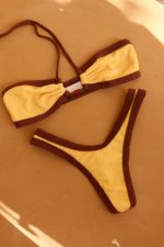 Biquíni Mia Solarium/Cappuccino traz sutiã tomara que caia com rolotê e aviamentos em acrílico, permitindo diversas formas de amarração – inclusive no pescoço, pra você variar o estilo como quiser. A calcinha é asa-delta com acabamento em viés contrastante, realçando o visual e modelando o corpo. Confeccionado na malha texturizada Carmel nas cores Solarium e Cappuccino. O tecido é macio, tem forro em poliamida que não retém areia, proteção UV FPU 50+ e toque super confortável.