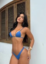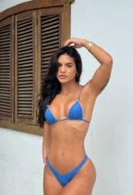 Biquíni Sun Náutico – Sutiã cortininha com casinha na alça, dando a opção de usar modelo camisetinha (ombro) ou amarrado no pescoço e a calcinha é fio dental asa-delta. Malha carmel na cor náutico, costura pespontada em zig-zag deixando o conjunto ainda mais lindo. A malha é super macia, com suplex (não entra areia), confortável e com proteção UV FPU 50+.