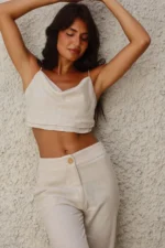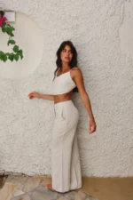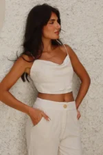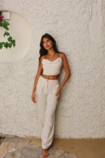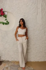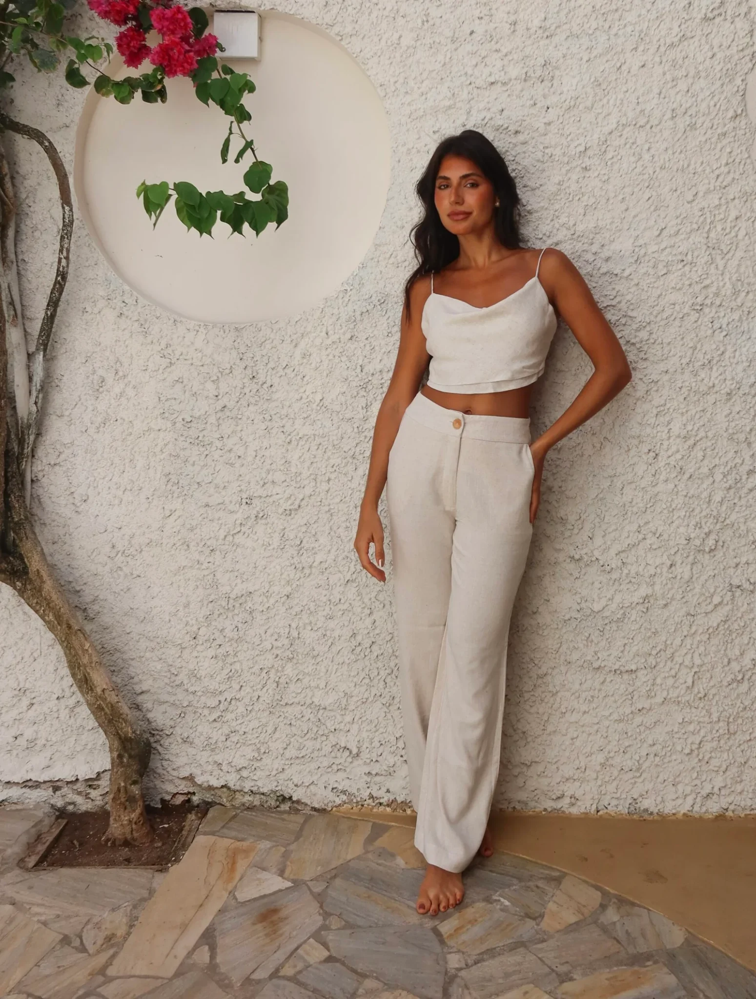Calça Helena Bege – Calça pantalona, cós com anatômico com bolso frontal e traseiro. Tecido Viscolinho, na cor Bege e preto, possui toque macio e agradável.