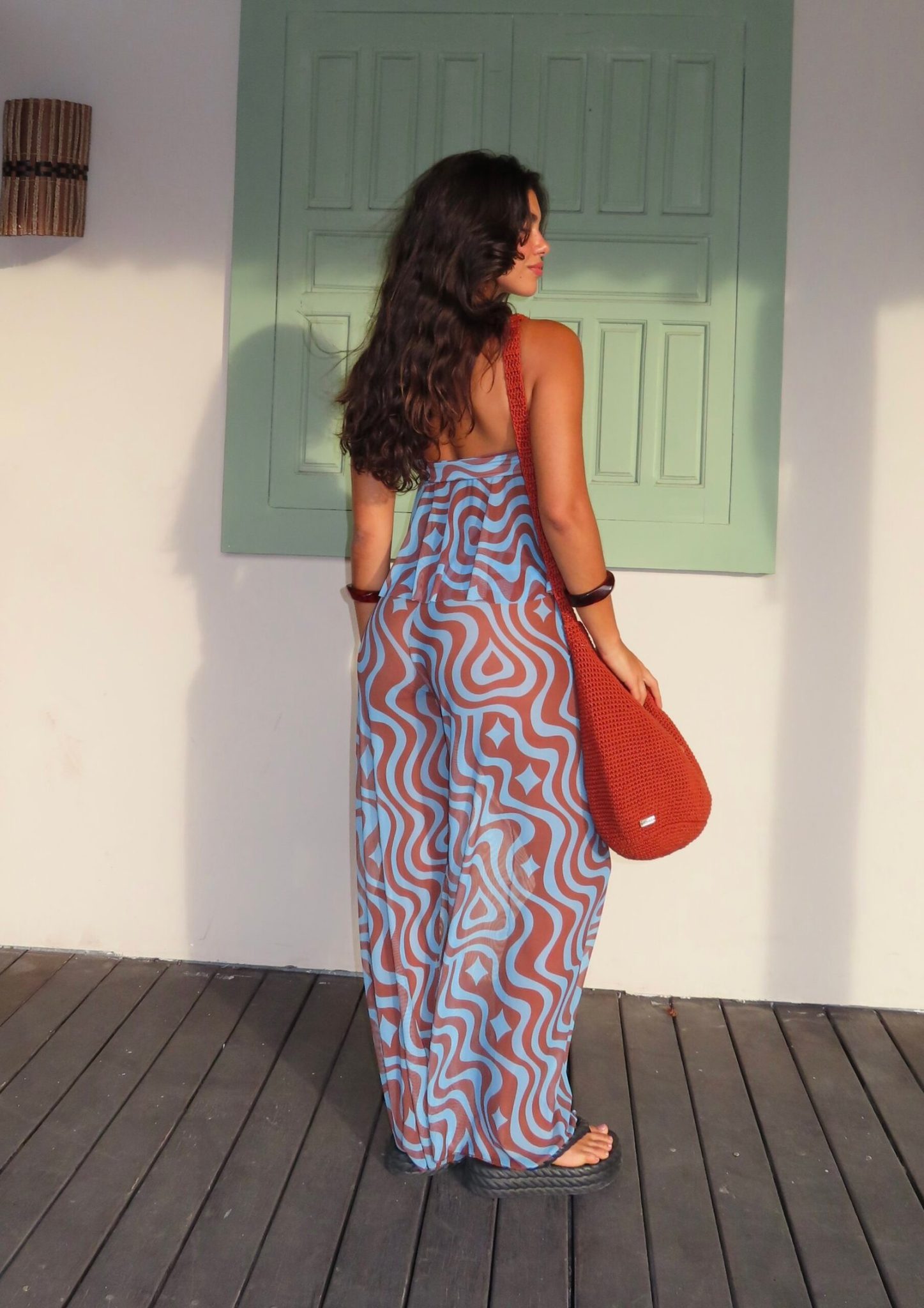 Confeccionada em tule com a estampa exclusiva Astra, tem toque macio e agradável, perfeita para compor looks sofisticados e descomplicados de praia ou pós-praia.