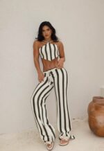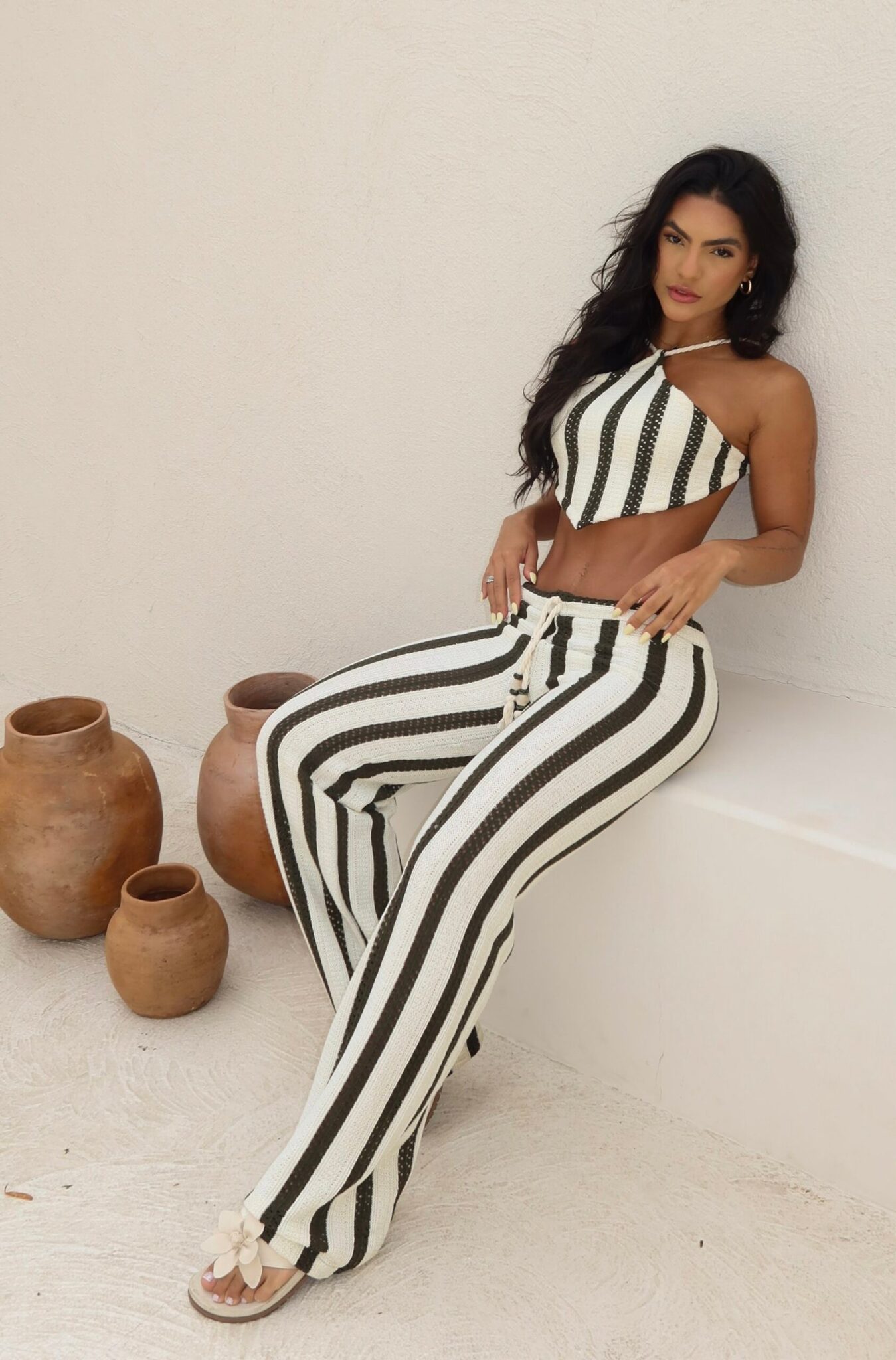 Cropped Brenda Cidreira – Moderno, fresh e cheio de bossa. O cropped triangular em tricot listrado valoriza a silhueta com caimento leve e toque agradável. Possui amarração nas costas em cordão São Francisco, que além de garantir ajuste, adiciona um detalhe sofisticado e artesanal. Combine com a Calça Bella Cidreira para um conjunto marcante e cheio de personalidade.