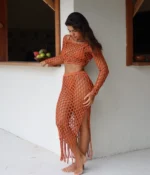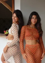 Cropped Janaína – Viés em malha maquinetada. Rede de Poliamida é super macia, confortável e com proteção UV FPU 50+.