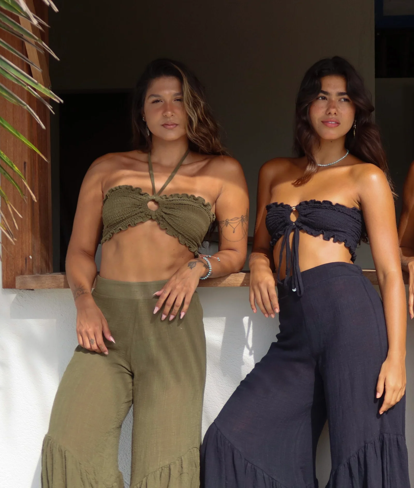 Cropped Thaís de lastex com argola e amarração. Tecido Coton rústico, com toque macio e agradável.