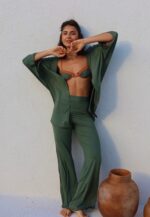 Kimono Cléa – Recorte em U, presilha para fecho. Malha Fluit, na cor Crôco, a malha é super macia, confortável e com proteção UV FPU 50+.