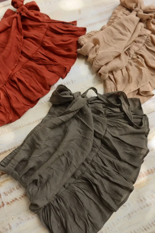 Saia Camila vermelha – Saia curta com drapeado e fechamento em zíper invisível. Confeccionada em crepe com um toque macio.