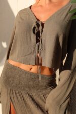 Saia Iasmin Militar – Tecido em crepe, fenda poderosa e aquele caimento que trás leveza: a Saia Iasmin foi feita pra acompanhar o movimento do corpo com leveza e estilo. Confeccionada em crepe, valoriza o corpo com conforto e caimento impecavél. Vibrante, moderna, cheia de presença e fácil de combinar.