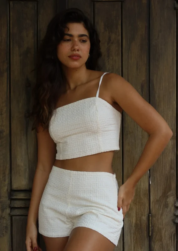 Feita em crepe leve com estampa exclusiva Conxá, tem modelagem curta e amarração lateral estilo pareô, que valoriza a silhueta e garante um caimento perfeito.