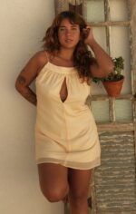 Vestido Olivia Concha – Modelagem camisetinha alça fina com amarração no ombro, decote U nas costas e elástico para acentuar a peça e dar maior conforto, decote com formato de gota frontal. Confeccionado em crepe na cor concha, com forro em viscose aplicação leve e fluida. Esse tecido tem um caimento perfeito!!